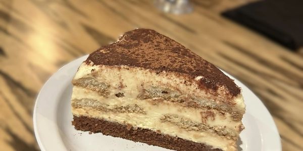 Traditional Tiramisu sits on top of a delicious layer of chocolate cake